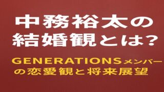 人物特集中務裕太 結婚観と恋愛観|GENERATIONSの未来像に迫る GENERATIONS from EXILE TRIBE の中心メンバーとして活躍する中務裕太さん。その抜群のダンススキルと誠実な人柄は、多くのファンを惹きつけてきました。近年、ネットやSNSでは「結婚」というワードが度々取り上げられていま... 2025.07.17人物特集結婚・熱愛芸能・エンタメ